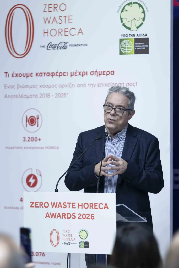 Στην εκδήλωση απηύθυνε χαιρετισμό ο κ. Μανώλης Γραφάκος, Γενικός Γραμματέας Συντονισμού Διαχείρισης Αποβλήτων του ΥΠΕΝ, ο οποίος υπογράμμισε: «Η πλατφόρμα Zero Waste HORECA αποτελεί πρότυπο καινοτομίας στον κλάδο, δίνοντας στις επιχειρήσεις τα εργαλεία και την έμπνευση να μειώσουν το περιβαλλοντικό τους αποτύπωμα. Η πολιτεία αναγνωρίζει τη σημασία αυτής της προσπάθειας και υποστηρίζει ενεργά την προώθηση βιώσιμων πρακτικών σε όλη τη χώρα».