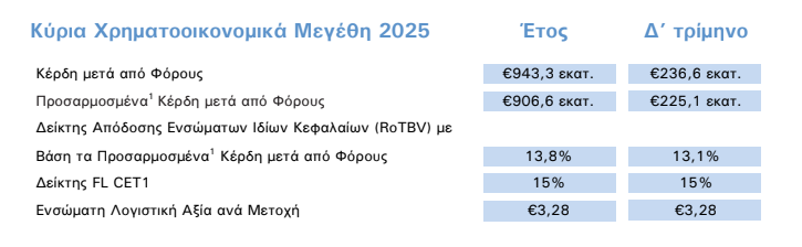 Ισχυρή κεφαλαιακή επάρκεια – Δείκτης FL CET1 στο 15% και οργανική δημιουργία κεφαλαίου 206 μ.β. το 2025 Νέο στρατηγικό σχέδιο για την περίοδο 2026-2028 και Investor Day το β’ τρίμηνο 2026